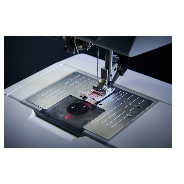 Guidage de couture laser réglable Projetez une ligne de guidage laser directement sur votre tissu pour aligner facilement vos points. Alignez les lignes de points décoratifs, espacez systématiquement les lignes de matelassage et bien plus encore. |