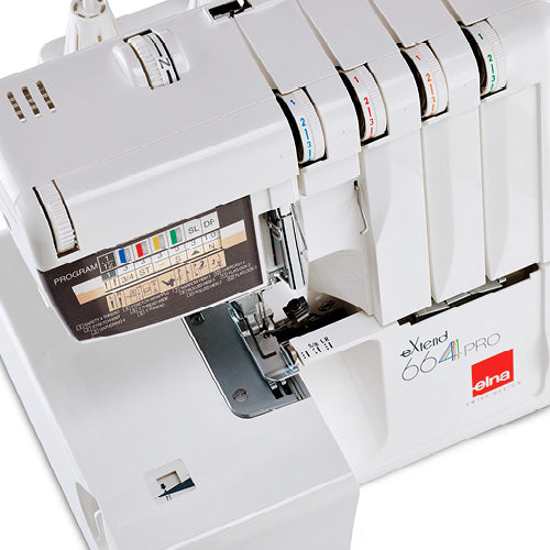 Avec l'elna eXtend 664PRO, vous avez trouvé votre meilleur allié pour simplifier la surjeteuse couture ! Cette surjeteuse vous permet en un tour de main de couper proprement le bord d'un tissu, de le surfiler et de l'assembler. La 664PRO dispose en plus d'un panneau d'affichage indiquant les réglages recommandés en fonction du programme choisi.